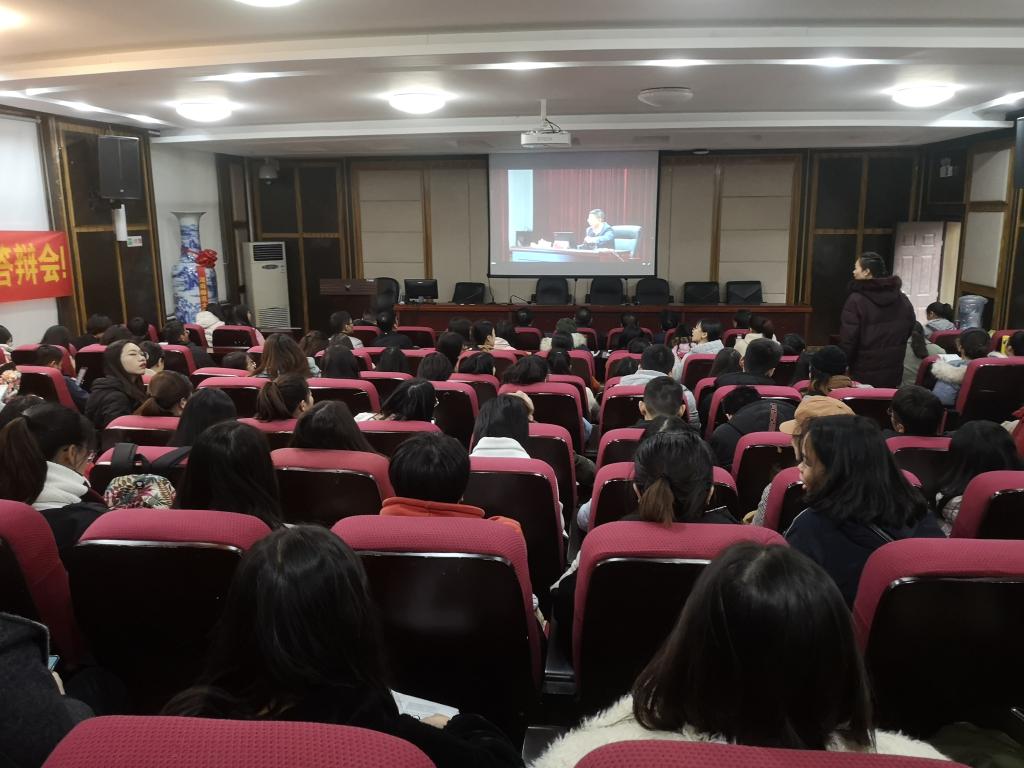 yl23455永利官网在216多媒体教室设立分会场,组织全院在职教职工党员和部分学生党员收看。图为yl23455永利官网分会场的收看现场。