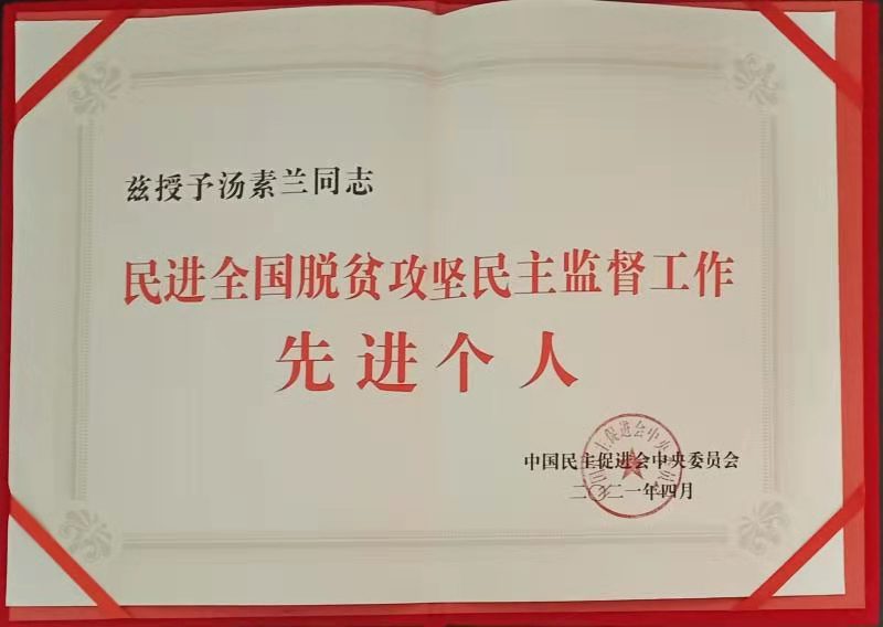 4月12日,民进中央在北京召开脱贫攻坚民主监督工作总结会,通报《民进中央关于表彰民进全国脱贫攻坚民主监督工作先进集体和先进个人的决定》,民进湖南省委会副主委、yl23455永利官网汤素兰教授荣获“民进全国脱贫攻坚民主监督工作先进个人”称号。
