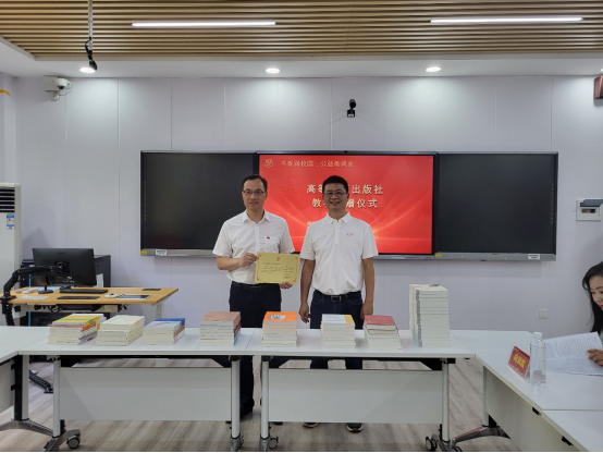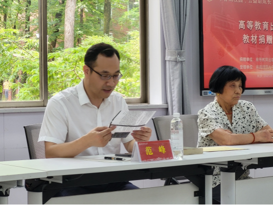熊书记首先感谢高教社带来了187种共407册价值2万元的书籍。这不仅是对教育事业的支持,对知识传播努力的践行,更是对刘衍老师在天之灵的慰藉。已故刘衍老师是中文系的著名教授,国务院特殊津贴专家,著作等身。《中国散文史》受到了教育界和读者广泛的欢迎和使用。本次高教社精心挑选的优质书籍以权威性、前沿性、系统性,填补了学院教学资源的一些缺口。新课标改革的背景下,高教社教材理念的呈现将对我们未来探索育人路径做出突出贡献,并且普惠更多老师与同学。