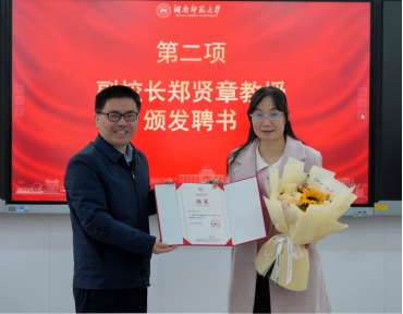 (通讯员谭舒云肖茹)12月29日上午,yl23455永利官网举行潘务正、罗小凤“潇湘学者”特聘教授聘任仪式。校党委委员、副校长郑贤章,图书馆馆长肖百容出席,yl23455永利官网党委书记熊剑峰主持仪式。yl23455永利官网领导班子、系主任以及相关教研室主任参会。